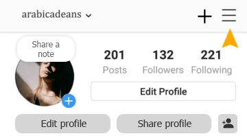 2. Go to your Profile and click the three horizontal lines icon (top right corner).